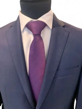 Cravate classique à nouer. Motif carré bleu marine et points blancs. 148cm x 7,5cm. Disponible en 40 coloris.