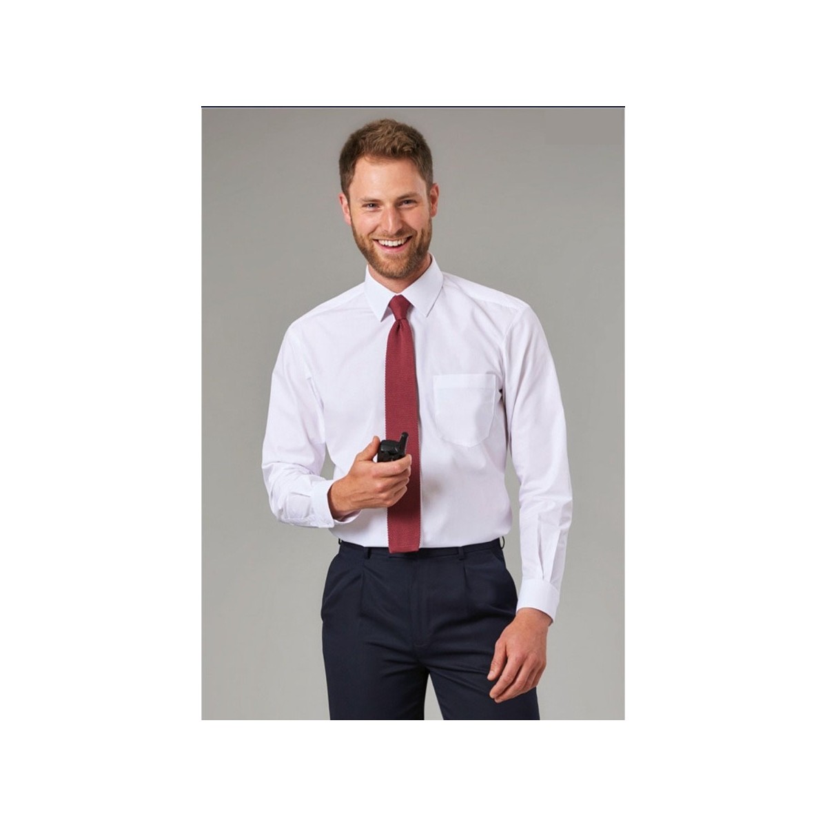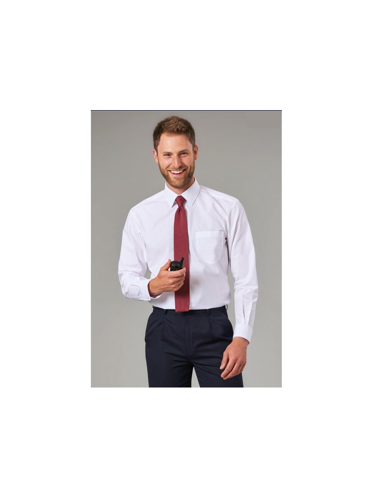 Chemise Juno de qualité premium. Coupe classique avec poche poitrine et manches longues avec 2 boutons de manchettes. Composition du tissu 65% polyester et 35% coton et poids 115g. Lavable en machine à 40°c.