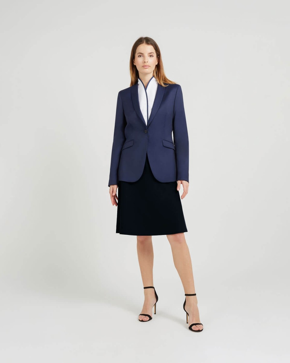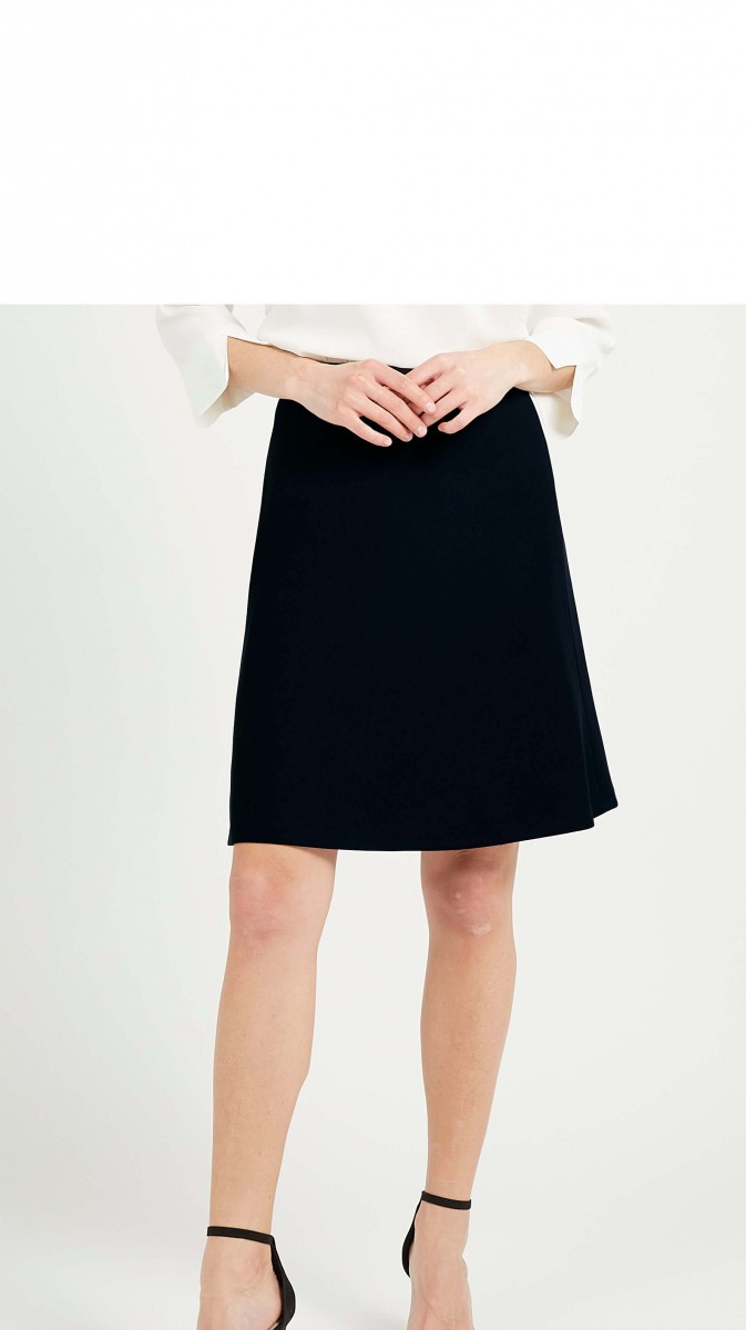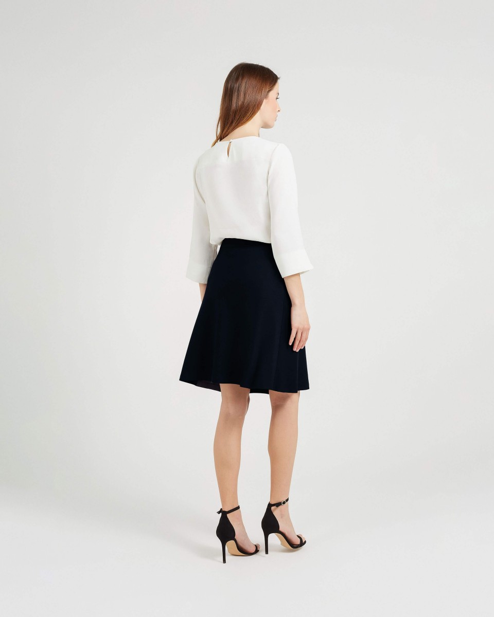 Jupe évasée. Fermeture éclair et bouton à l'arrière.