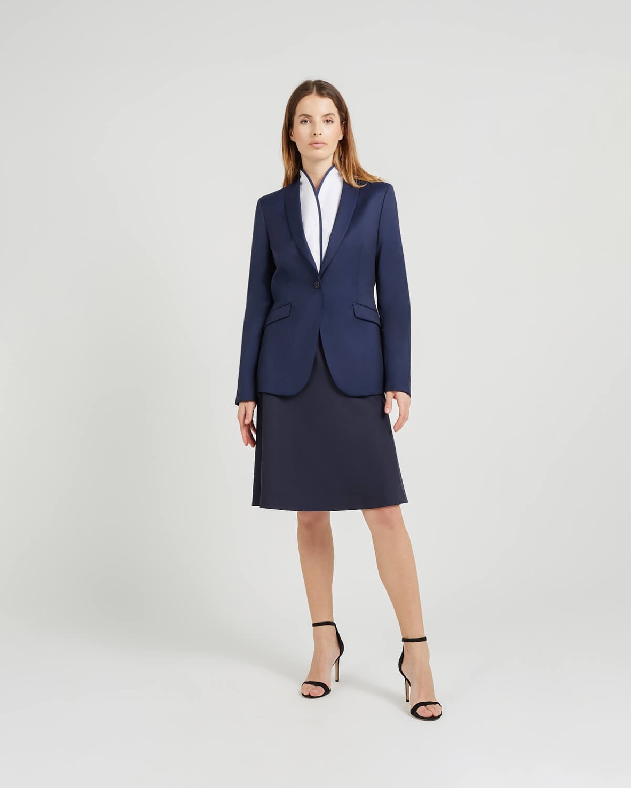Jupe évasée. Fermeture éclair et bouton à l'arrière.