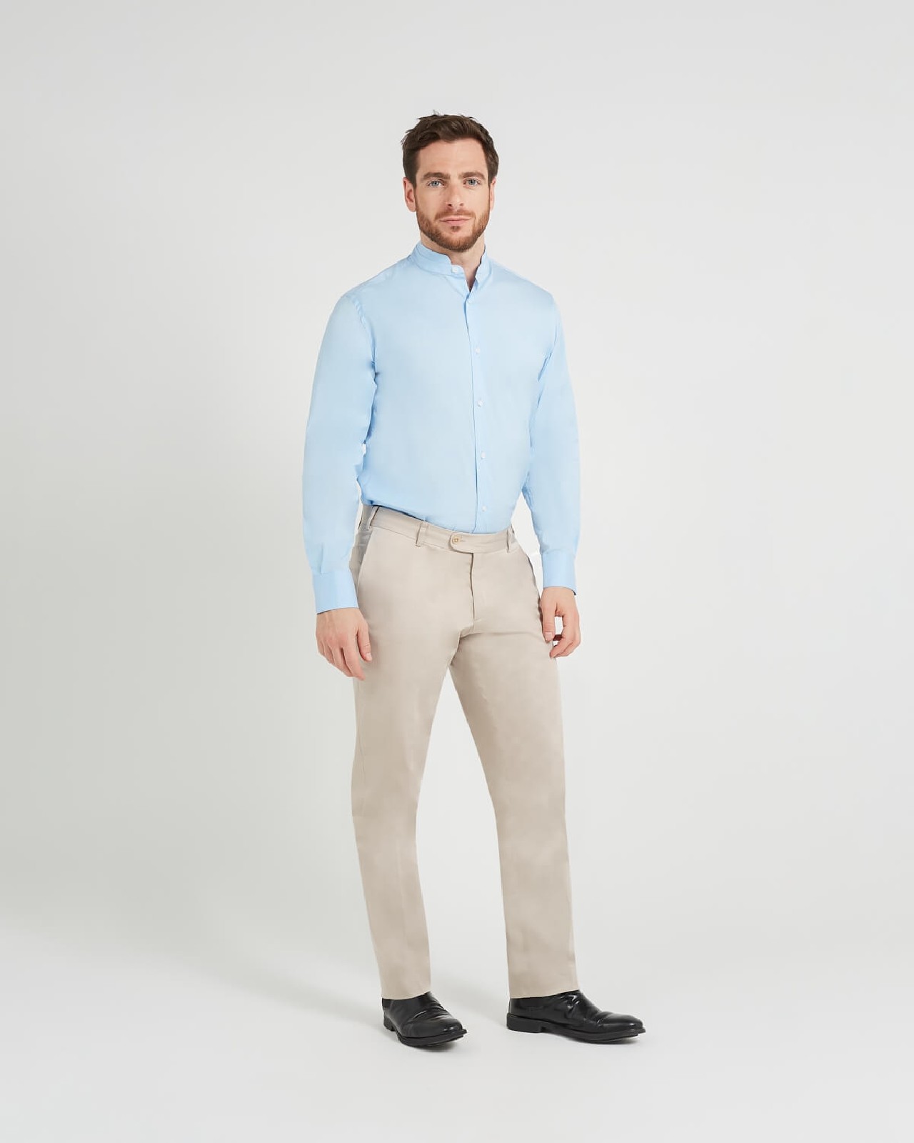 Pantalon chino avec fermeture par zip et bouton. Deux poches italiennes sur le devant et deux poche passepoilées avec bouton dos. Passants pour ceinture.