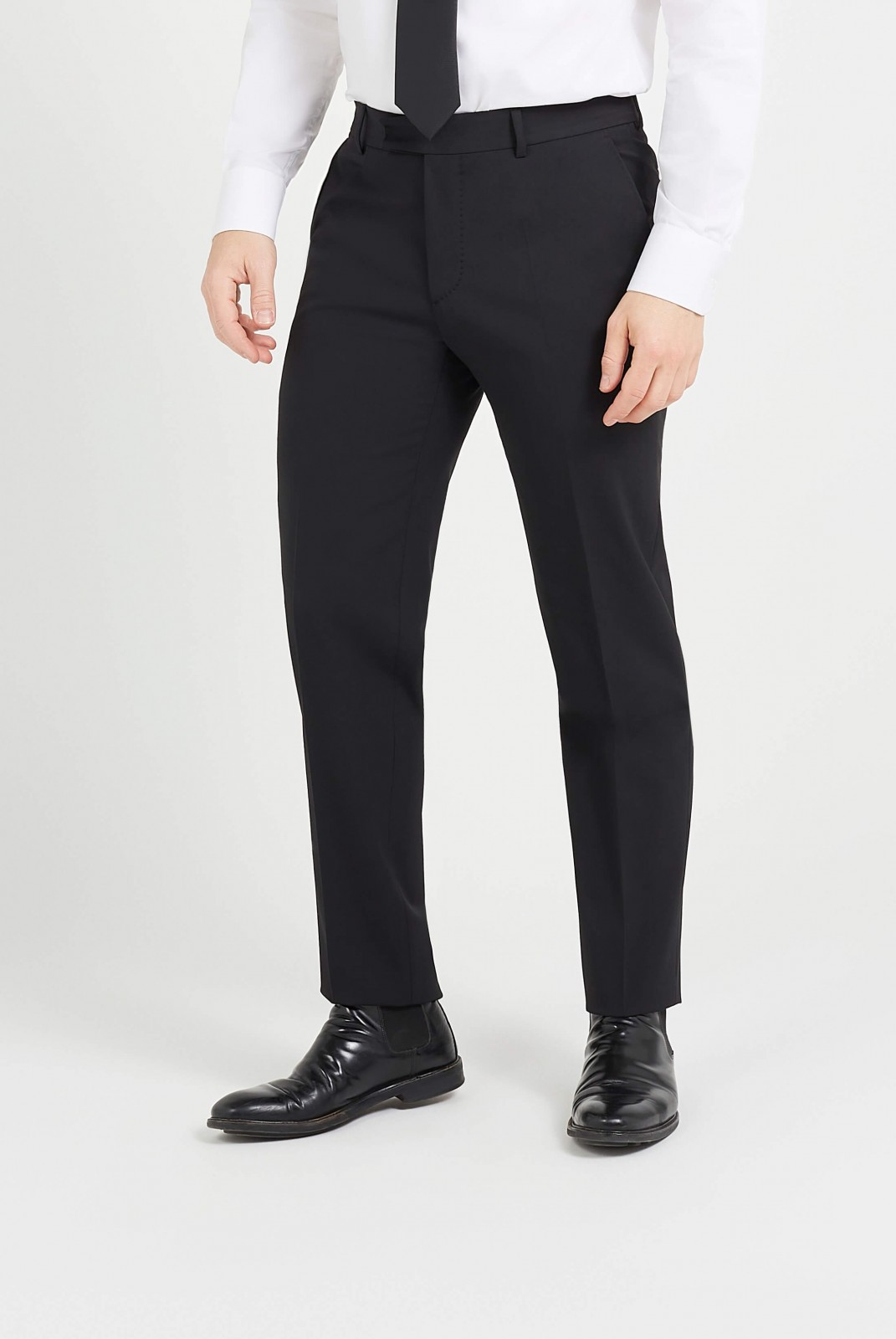 Pantalon droit. Fermeture par zip et crochet. Deux poches italiennes. Passants pour ceinture. Plis sur le devant.