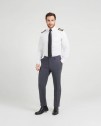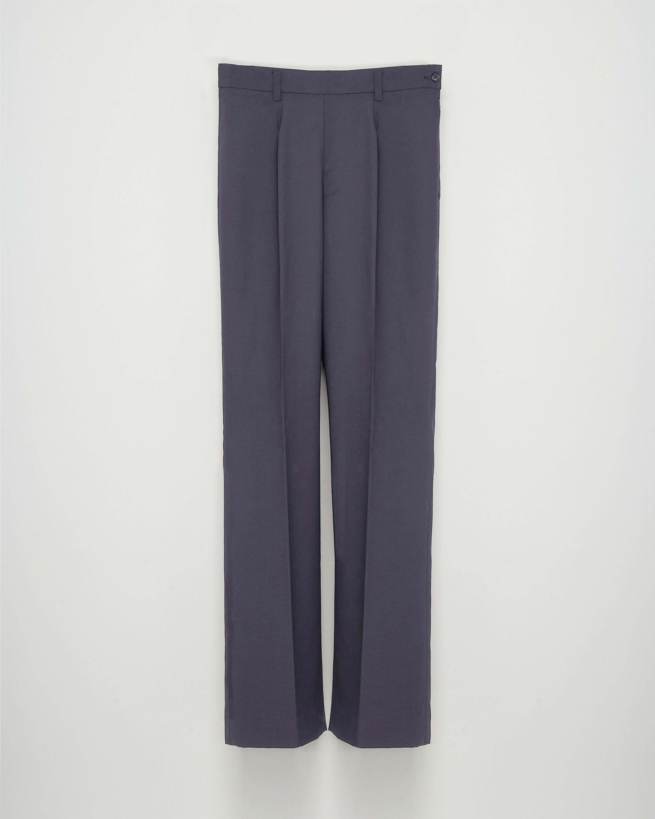 Pantalon droit. Fermeture par zip et crochet. Deux poches italiennes. Passants pour ceinture. Plis sur le devant.