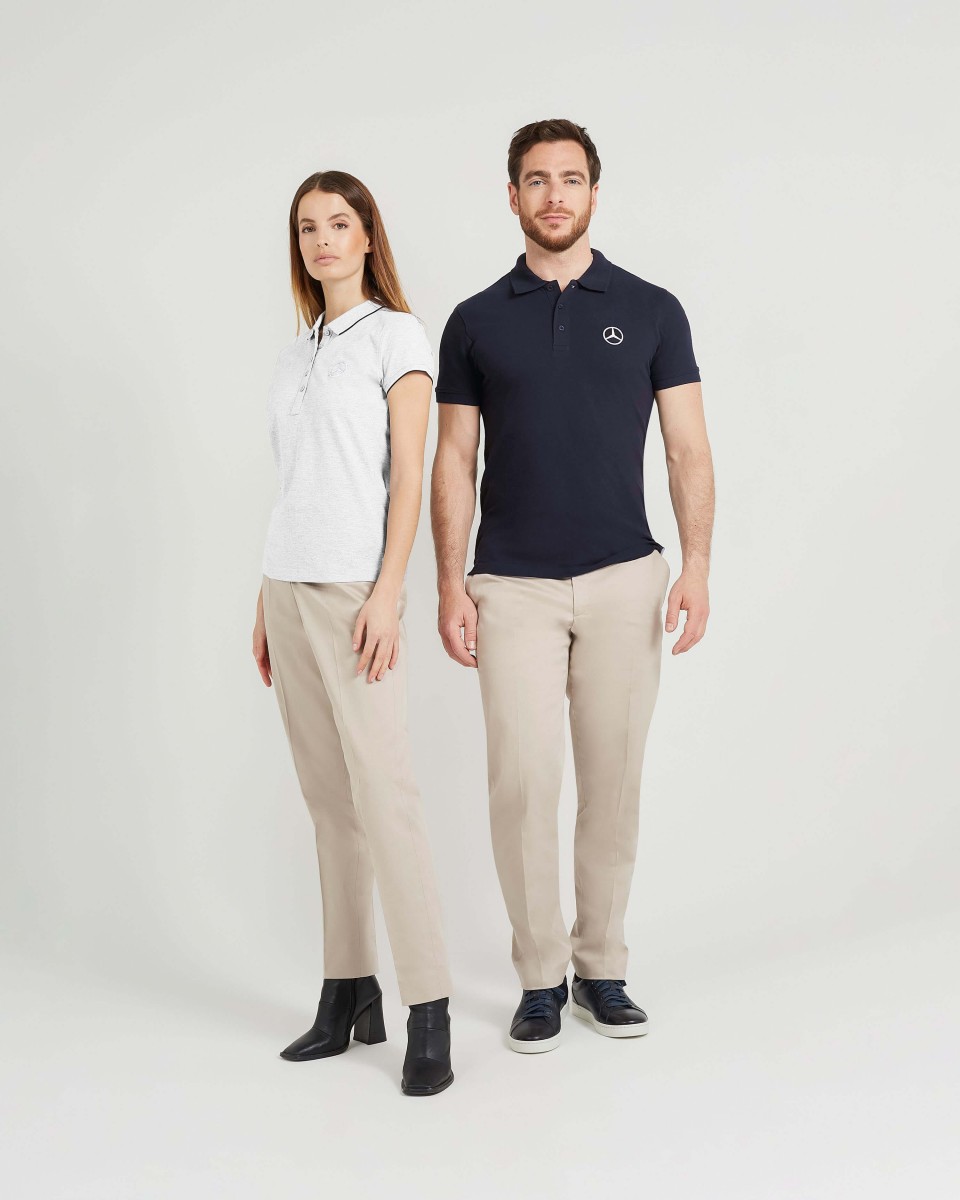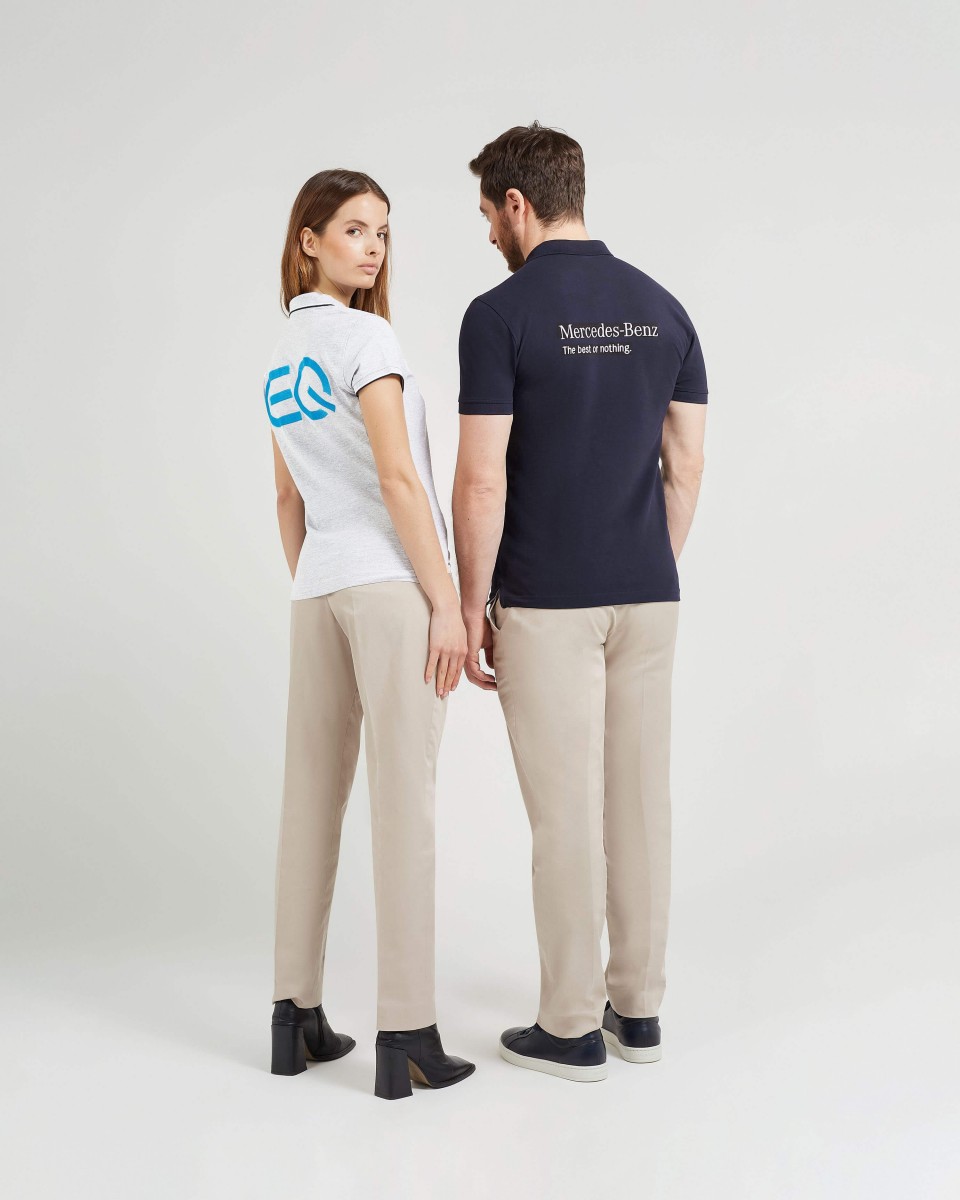 Polo à manches courtes brodé. Broderie sur poitrine et dans le dos. Fermeture par trois boutons. Disponible en manches longues. Broderie sur demande.