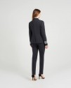 Veste tailleur doublée à col tailleur. Fermeture par deux boutons. Galons gris mat aux manches. Deux poches à rabat et une poche gilet poitrine. Pinces devant et derrière. Une fente dos.